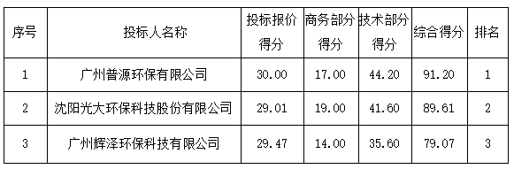 投標(biāo)結(jié)果:最終評(píng)標(biāo)委員會(huì)一致推薦 廣州普源環(huán)保有限公司 為中標(biāo)單位,中標(biāo)金額為人民幣 2350000.00 元,(大寫金額: 貳佰叁拾伍萬(wàn)元整 )。