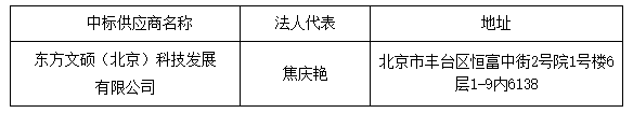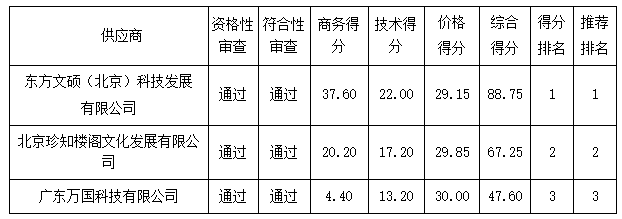 投標(biāo)結(jié)果:最終評(píng)標(biāo)委員會(huì)一致推薦 東方文碩(北京)科技發(fā)展有限公司 為中標(biāo)單位,中標(biāo)金額為人民幣 297900.00 元,(大寫(xiě)金額: 貳拾玖萬(wàn)柒仟玖佰元整 )。