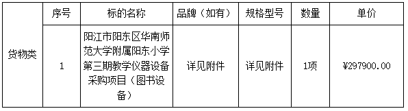 二、采購(gòu)項(xiàng)目名稱:陽(yáng)江市陽(yáng)東區(qū)華南師范大學(xué)附屬陽(yáng)東小學(xué)第三期教學(xué)儀器設(shè)備采購(gòu)項(xiàng)目(圖書(shū)設(shè)備)
