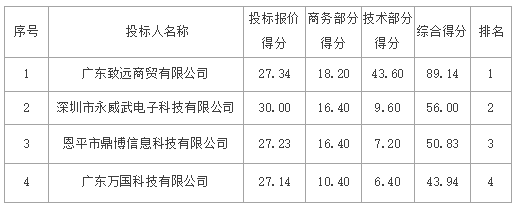投標(biāo)結(jié)果:最終評(píng)標(biāo)委員會(huì)一致推薦 廣東致遠(yuǎn)商貿(mào)有限公司 為中標(biāo)單位,中標(biāo)金額為人民幣 693385.00 元,(大寫(xiě)金額: 陸拾玖萬(wàn)叁仟叁佰捌拾伍元整 )。