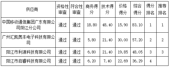 投標(biāo)結(jié)果:最終評(píng)標(biāo)委員會(huì)一致推薦 中國(guó)移動(dòng)通信集團(tuán)廣東有限公司陽(yáng)江分公司 為中標(biāo)單位,中標(biāo)金額為人民幣 787385.00 元,(大寫金額: 柒拾捌萬(wàn)柒仟叁佰捌拾伍元整 )。