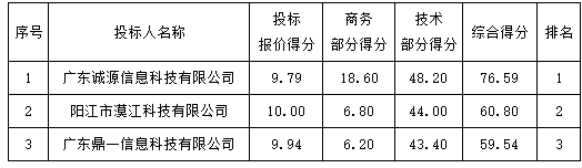 投標結果:最終評標委員會一致推薦 廣東誠源信息科技有限公司 為預中標單位,中標金額為人民幣 672300.00 元,(大寫金額: 陸拾柒萬貳仟叁佰元整 ) 。