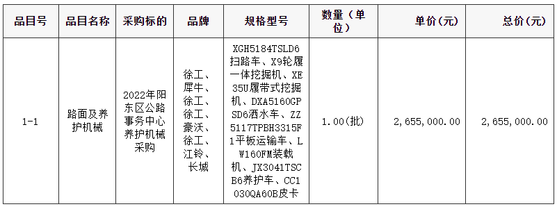 2022年陽(yáng)東區(qū)公路事務(wù)中心養(yǎng)護(hù)機(jī)械采購(gòu)項(xiàng)目