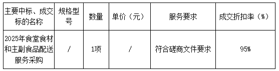 磋商結(jié)果:最終磋商小組一致推薦 廣東中禾食品有限公司 為成交單位,成交折扣率為 95% 。