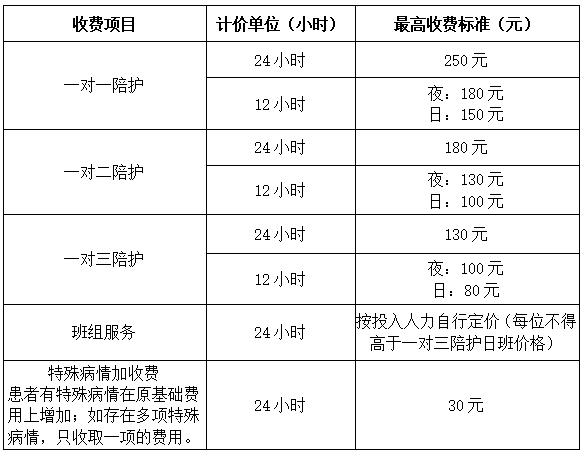 2)陪護(hù)服務(wù)費(fèi)報(bào)價(jià):