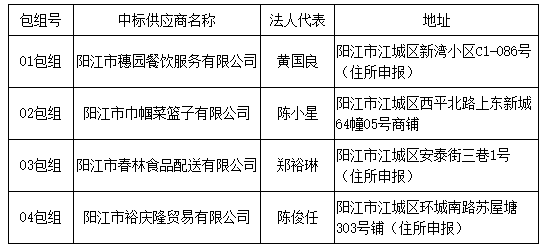01包組:最終評(píng)標(biāo)委員會(huì)一致推薦 陽(yáng)江市穗園餐飲服務(wù)有限公司 為中標(biāo)單位,中標(biāo)折扣率為 98% 。