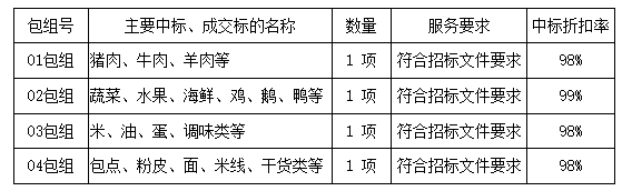 03包組:最終評(píng)標(biāo)委員會(huì)一致推薦 陽(yáng)江市春林食品配送有限公司 為中標(biāo)單位,中標(biāo)折扣率為 98% 。
