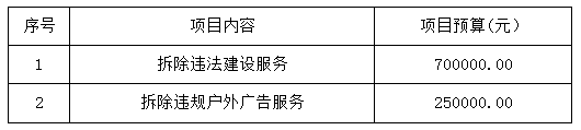 二、采購項目名稱:陽江市江城區(qū)綜合行政執(zhí)法局2025年拆除違法建設和違規(guī)戶外廣告服務資格采購項目