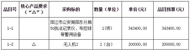 1. 項目名稱:陽江市公安局陽東分局5G執(zhí)法記錄儀、布控球等警用設備采購項目