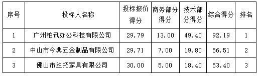 投標結果:最終評標委員會一致推薦 廣州柏訊辦公科技有限公司 為中標單位,中標金額為人民幣 991950.10 元,(大寫金額: 玖拾玖萬壹仟玖佰伍拾元壹角整 )。