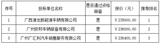 報價結果:最終詢價小組一致推薦 廣西源龍新能源車輛有限公司 為成交單位,成交金額為人民幣 235000.00 元(大寫金額: 貳拾叁萬伍仟元整 )。