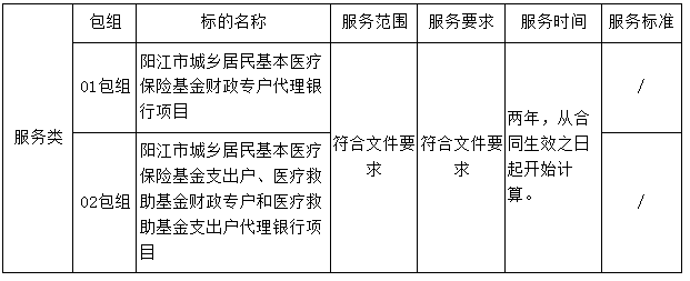 二、采購項目名稱:陽江市城鄉(xiāng)居民醫(yī)療保險基金和醫(yī)療救助基金代理銀行采購項目(二次招標(biāo))