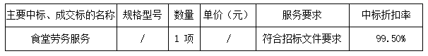 廣東業(yè)信采購招標(biāo)有限公司受 陽江市陽東區(qū)華南師范大學(xué)附屬陽東小學(xué) 的委托,于2024年12月23日就 陽江市陽東區(qū)華南師范大學(xué)附屬陽東小學(xué)食堂勞務(wù)服務(wù)項(xiàng)目 (項(xiàng)目編號:YXCG-20241201)采用公開招標(biāo)方式進(jìn)行采購?,F(xiàn)就本次采購的中標(biāo)結(jié)果公告如下: