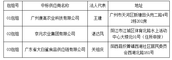 注:陽西縣康誠供銷農(nóng)產(chǎn)品有限公司,三個包組的資格審查文件均未提供符合《中華人民共和國政府采購法》第二十二條規(guī)定的條件的證明材料,資格性審查不通過。