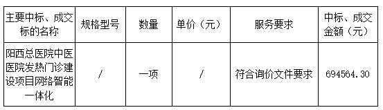 2.項目名稱:陽西總醫(yī)院中醫(yī)醫(yī)院發(fā)熱門診建設項目網(wǎng)絡智能一體化項目