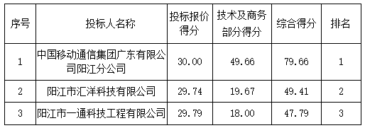 成交供應商名稱:中國移動通信集團廣東有限公司陽江分公司
