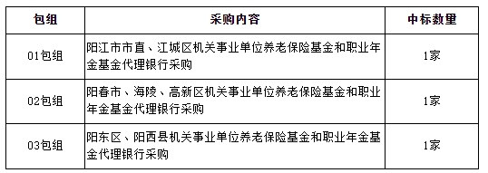 1. 項(xiàng)目名稱:陽江市機(jī)關(guān)事業(yè)單位養(yǎng)老保險(xiǎn)基金和職業(yè)年金基金代理銀行采購項(xiàng)目