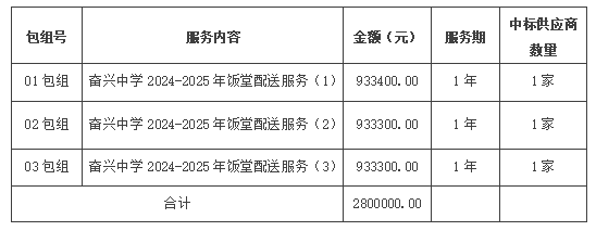 1. 項目名稱:奮興中學(xué)2024-2025年飯?zhí)门渌头?wù)項目