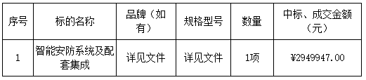 廣東業(yè)信招標有限公司受 廣東晉峰建設工程有限公司 的委托,于2025年6月25日就 廣東晉峰建設工程有限公司智能安防系統(tǒng)及配套集成項目 (項目編號:YXZB-20250617)采用公開比選方式進行采購?,F(xiàn)就本次采購的成交結(jié)果公告如下: