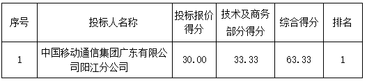 成交供應商名稱:中國移動通信集團廣東有限公司陽江分公司